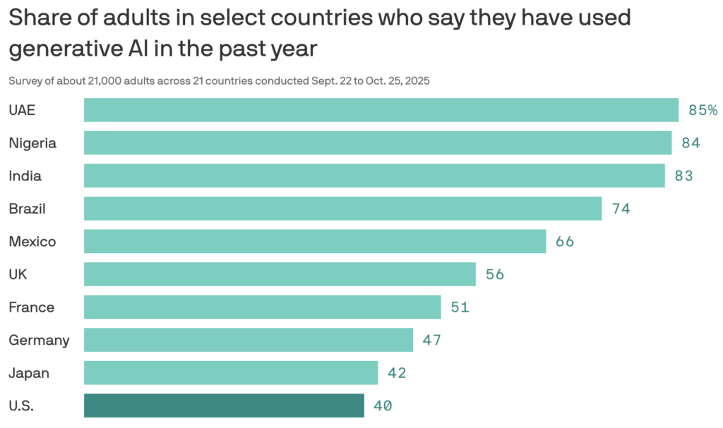 Uma nova pesquisa com 21.000 entrevistados em 21 países apontou o Brasil como o quarto país que mais usa inteligência