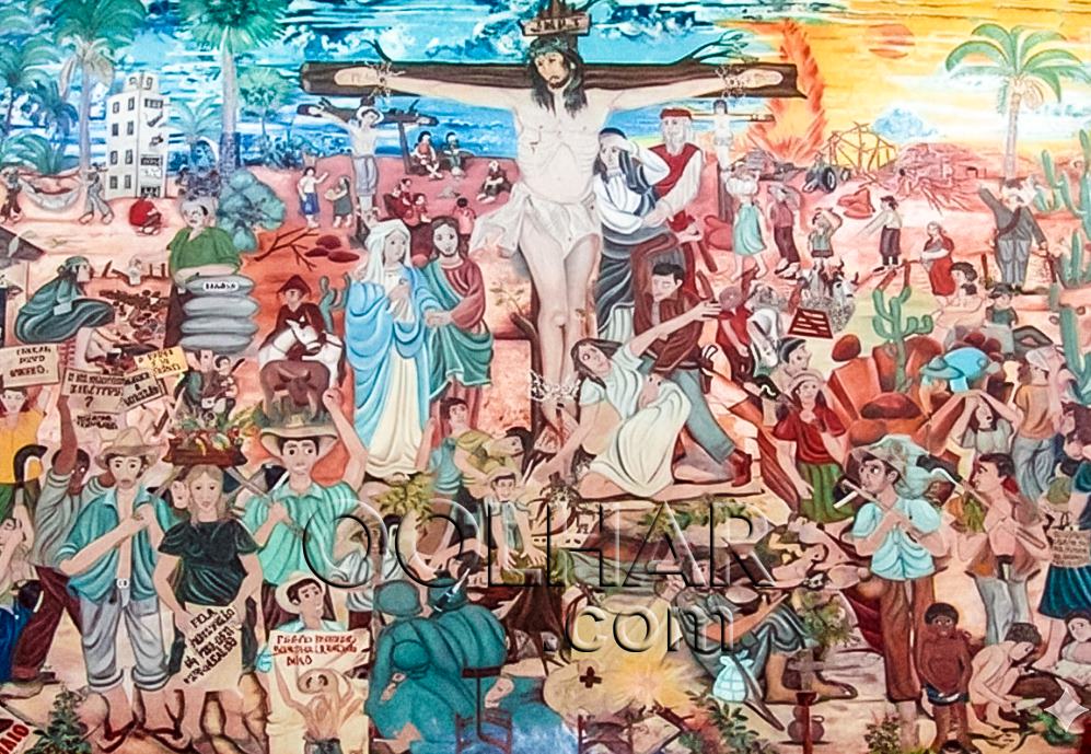O painel que reflete a realidade das pessoas que viveram uma situação de pobreza e sofrimento em Esperantina-PI, bem como suas lutas sociais, retrata também os desafios enfrentados pela população pobre nordestina e brasileira. Por séculos, essa parcela da sociedade conviveu com condições de extrema miséria e injustiças, e parteexpressiva ainda hoje convive. Entre 1980 e 2000, setores da Igreja Católica, incluindo a de Esperantina, por meio da teologia da libertação, apoiaram a formação das Comunidades Eclesiais de Base (CEBs) e estimularam movimentos populares a atuarem no enfrentamento de injustiças sociais e práticas exploratórias promovidas por empregadores e proprietários rurais.Essa trajetória, em Esperantina,está ilustrada no painel “Calvário de Cristo Hoje”, que reacendeuagora nova polemica na cidade.