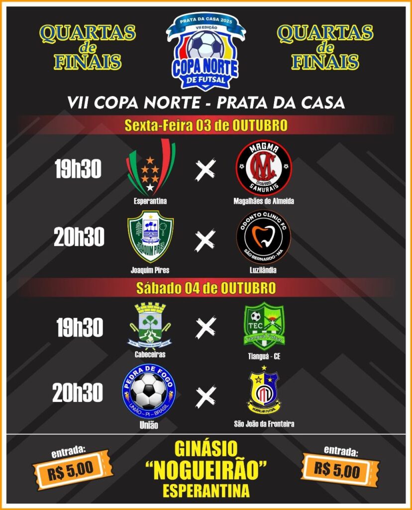 Esperantina recebe neste final de semana os Jogos das Quartas de Finais da Copa Norte de Futsal Prata da Casa, categoria adulta.