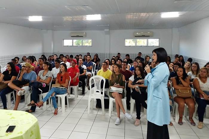 Dando continuidade ao início do período letivo houve um momento em que foi realizado a aula inaugural para os alunos iniciantes, a mesma foi ministrada pela Diretora de Ensino Profª. Msc. Ivonalda Brito de Almeida Morais que desejou, em nome da instituição, as boas-vindas ressaltando a importância da faculdade para os novos acadêmicos.
