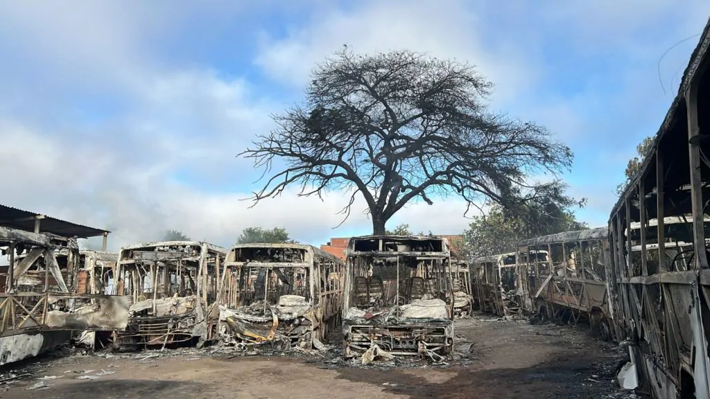 Incêndio destrói 13 ônibus escolares em garagem em Teresina