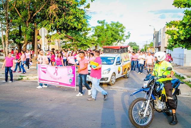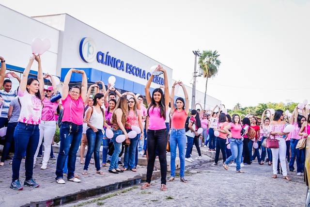 Momento em que a comunidade acadêmica da faculdade, professores, coordenadores, profissionais da secretaria de saúde e estudantes de outras instituições puderam levar às ruas da cidade uma mensagem sobre a prevenção do câncer de mama, valendo destacar a colaboração da SUTRAN para a perfeita ação de conscientização.