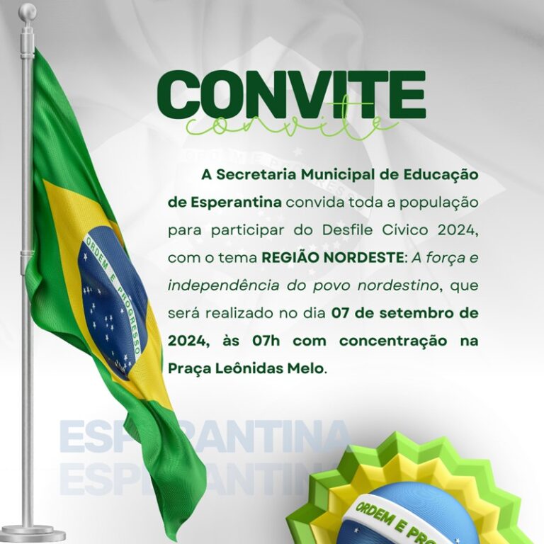 A Secretaria Municipal de Educação de Esperantina convida toda a população para participar do tradicional Desfile Cívico de 7 de…