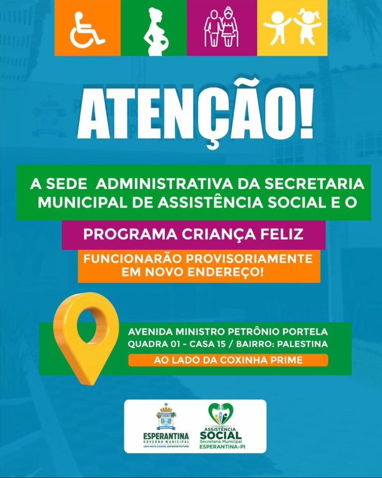 A Prefeitura de Esperantina informa que a sede administrativa da Secretaria Municipal de Assistência Social e o Programa Feliz agora…