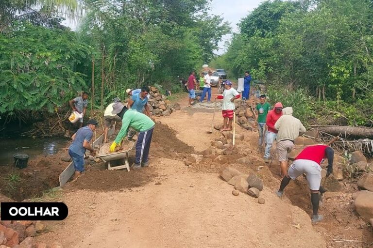 Cansados de esperar, moradores se unem e constroem passagem molhada na zona rural de Morro do Chapéu