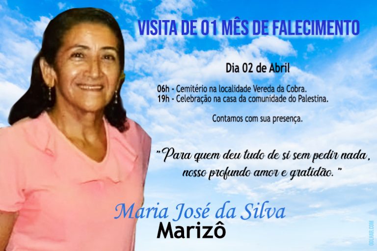 Convite Missa de 01 mês de falecimento de Maria José da Silva