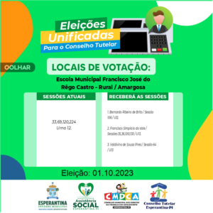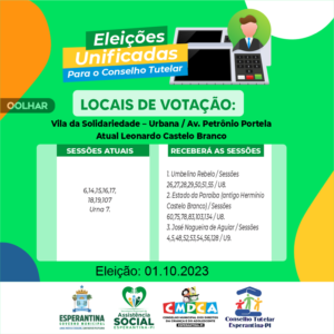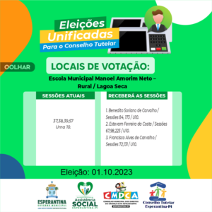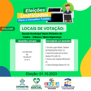 A Prefeitura de Esperantina, em parceria com a Secretaria Municipal de Assistência Social e o Conselho Municipal dos Direitos da Criança e do Adolescente – CMDCA, anuncia os detalhes para o processo eleitoral unificado do Conselho Tutelar, referente ao quadriênio 2024-2028.